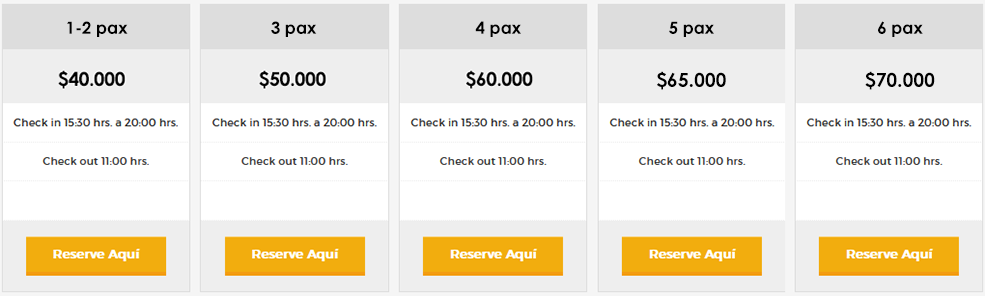 Tarifas Cabañas Chamiza – Tepual – Pargua